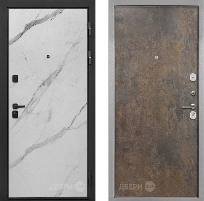 Входная Дверь Интекрон (INTECRON) Профит Black Мрамор Арктик Гладкая Гранж 860x2050 мм