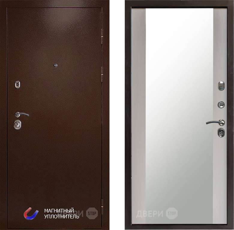 Входная Дверь Престиж Медь Зеркало Лиственница белая 860x2050 мм